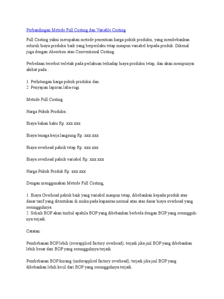 Doc Variable Costing Dan Full Costing Achmed E Academia Edu