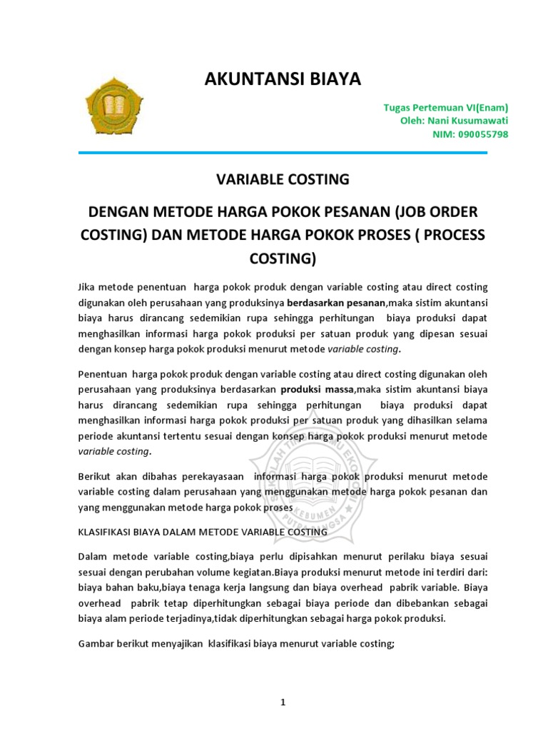 Nani K Tugas Pert Vi Variable Costing Job Order N Process