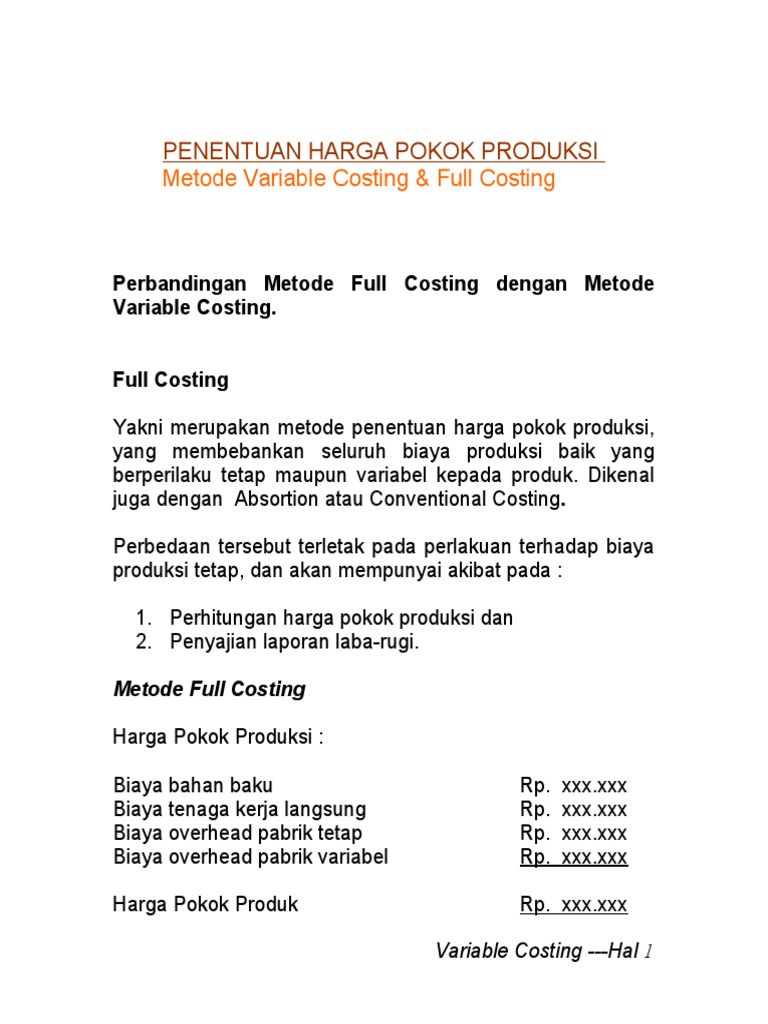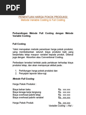 Menentukan Harga Pokok Produksi Dengan Variable Cost Halaman