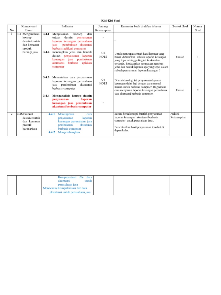 Kisi Kisi Soal Dan Rubrik Akuntansi Keuangan Docx