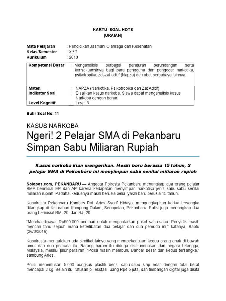 Contoh Soal Dan Pembahasan Zat Adiktif Dan Psikotropika