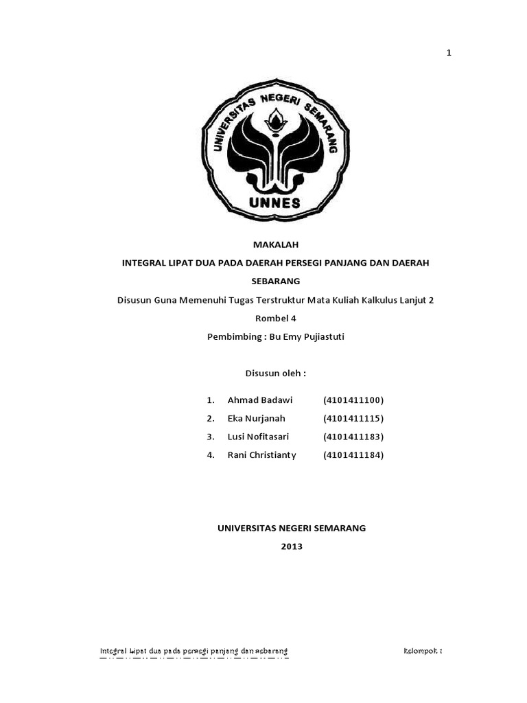 Integral Lipat Dua Kalkulus Dan Aplikasinya