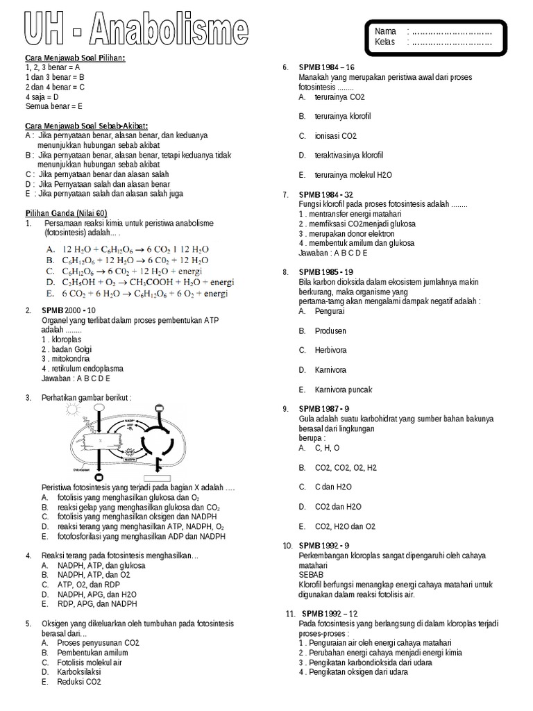 Kumpulan Soal Materi Anabolisme Fotosintesis