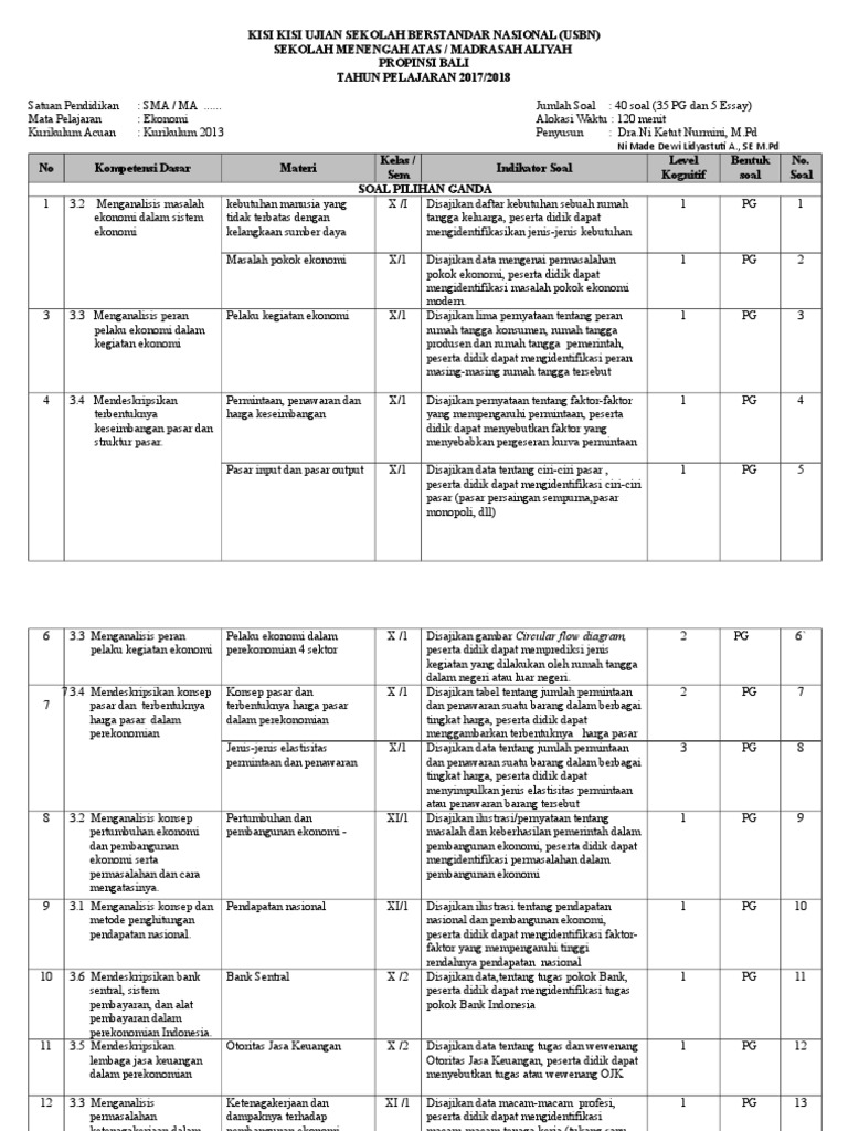 Pdf Kisi Kisi Soal Usbn Ekonomi Kurikulum Mochammad