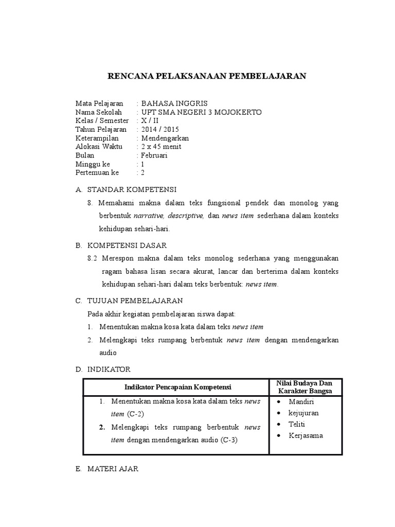 Doc Rpp Bahasa Inggris Sma Said Ichsan Academia Edu