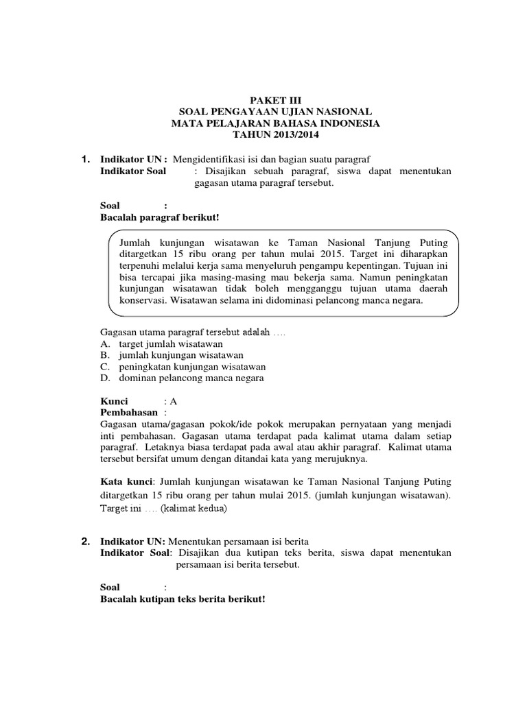 Contoh Soal Un Bahasa Indonesia Smp Pk1 Dan Pembahasannya