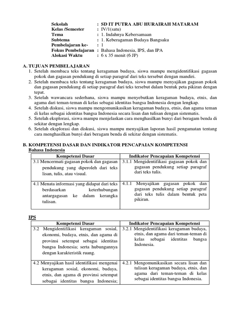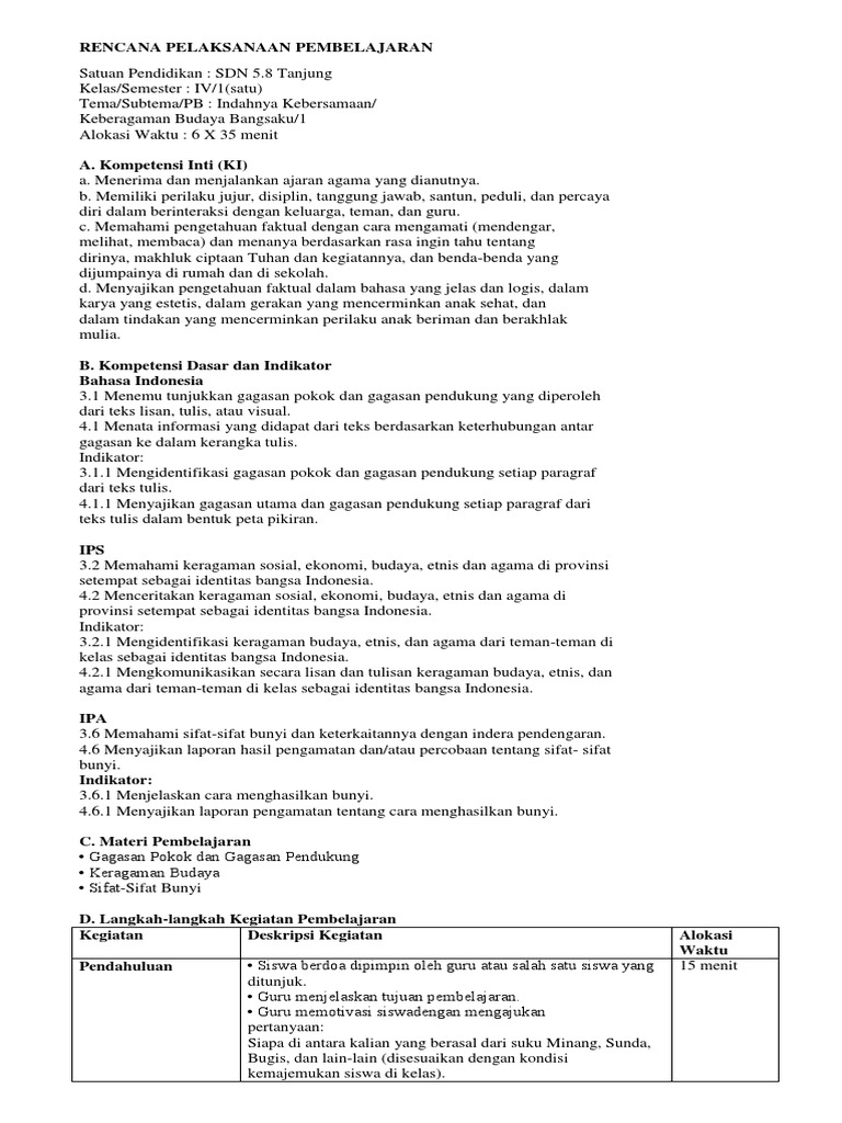 Rpp Tema 1 Subtema 1 Pembelajaran 1