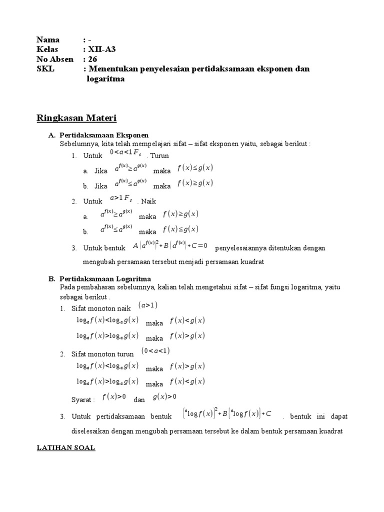 Persamaan Logaritma Dan Pertidaksamaan Eksponen