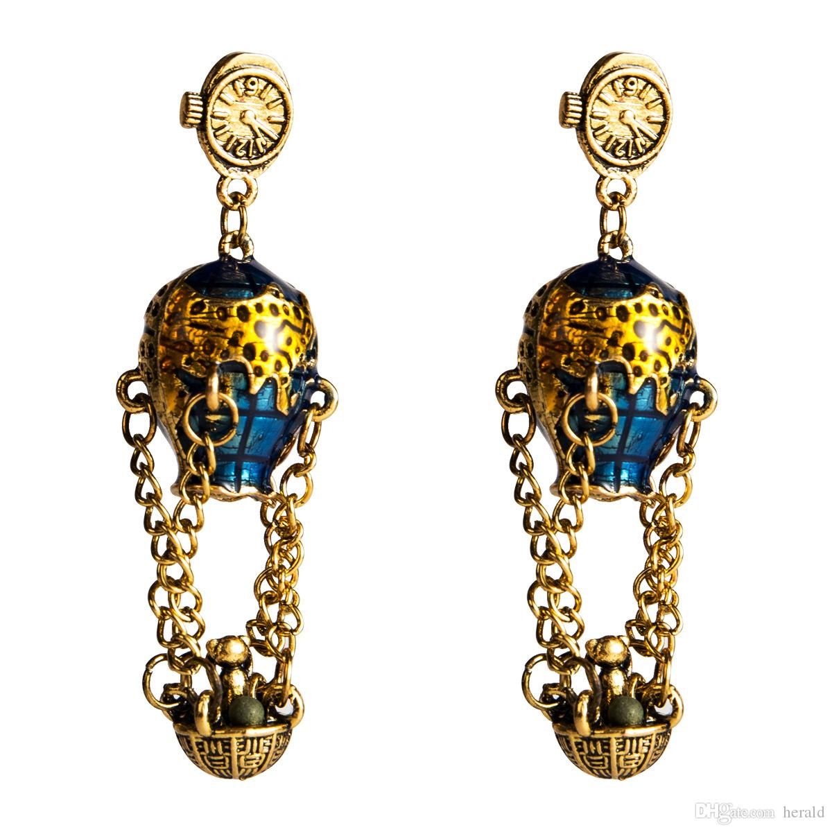 Alloy Drip Earrings Female Hot Air Balloon To Travel Around The World Map Pocket Watches Exaggerated Ideas Earring Ny 7