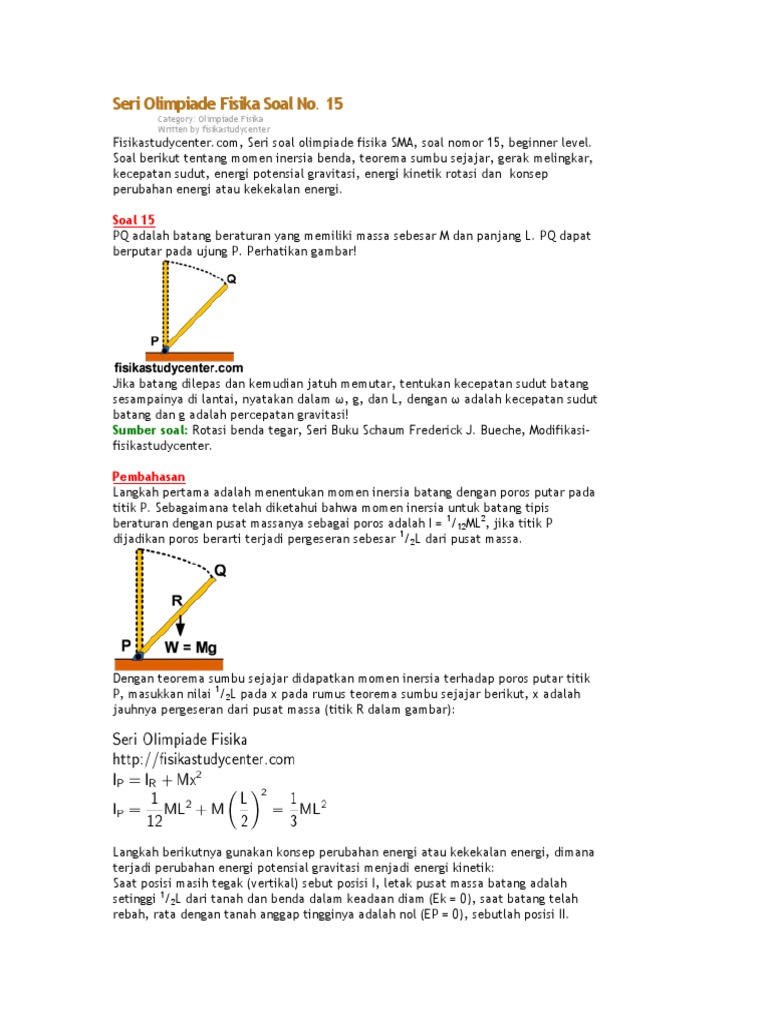 Evaluasi from imgv2-2-f.scribdassets.com Sehingga guna menghitung energi kinetik rotasi, kalian akan perlu terlebih dahulu untuk mengetahui momen inersia serta kecepatan sudut bendanya. Soal dan pembahasan rotasi benda tegar. Demikian rangkuman materi energi kinetik rotasi, materi ini terdapat pada kelas 11 semester 1 (ganjil) pada bab dinamika gerak rotasi dan kesetimbangan benda tegar untuk 64 soal dan pembahasan bab dinamika rotasi dan kesetimbangan benda tegar selengkapnya ada pada link berikut: