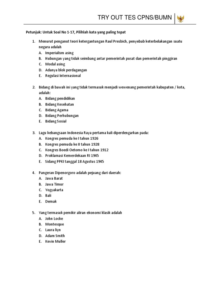 Jawaban soal bumn jawaban tes wawasan kebangsaan 1.