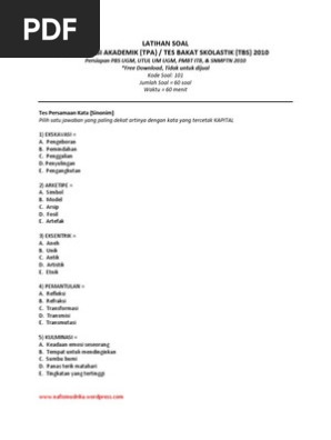 Contoh Soal Tpa Dan Pembahasannya. Tes ini meliputi empat jenis soal yaitu tes verbal atau bahasa, tes. Hal pertama yang harus dilakukan dalam soal ini adalah mengeliminasi jawaban yang tidak berhubungan yakni a, b, dan c.