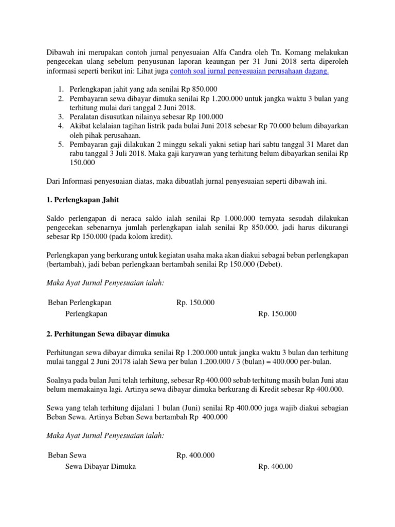 Dibawah Ini Merupakan Contoh Jurnal Penyesuaian Alfa Candra Oleh Tn from imgv2-2-f.scribdassets.com Object 2 1 contoh soal dan jawaban ayat jurnal penyesuaian sampai neraca ayat jurnal penyesuaian : Peralatan kantor tersisa rp4.500.000 2. Nilai saldo akun perlengkapan dalam neraca saldo berjumlah rp.